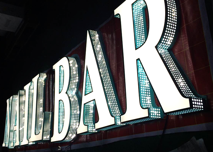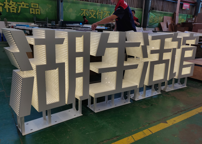 不銹鋼外露發(fā)光字:不銹鋼板作為發(fā)光外殼,前部打孔,氬弧焊焊接,噴涂汽車漆后研磨拋光,然后安裝LED外露防水燈進行串聯(lián)連接,大部分用于大型商場、企業(yè)大廈、房地產(chǎn)等商業(yè)場所的戶外廣告牌。